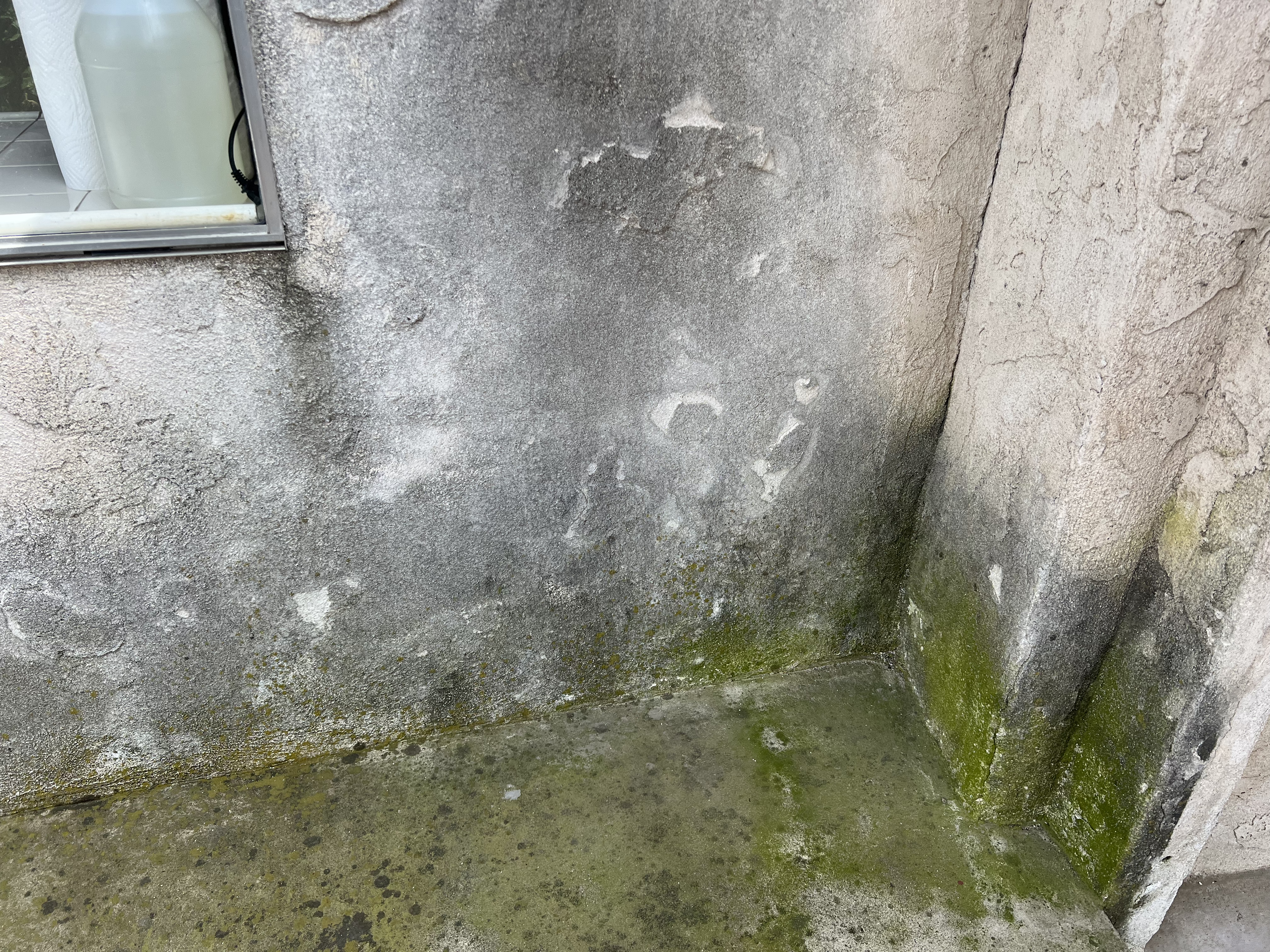Power wash and paint needed at several exterior wall locations. Approximately 25 gallons of paint needed (10g of flat white & 15g of satin white).